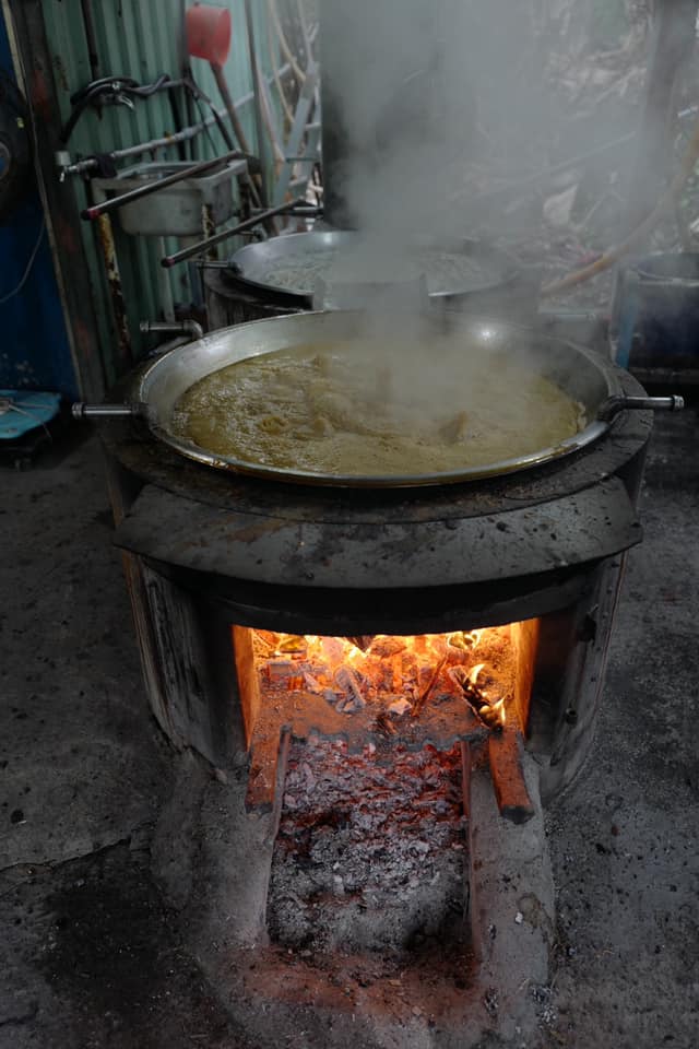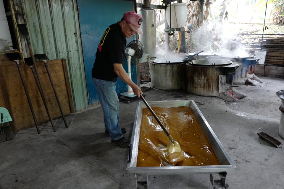 阿貴繼承父親古法製作黑糖,從榨汁、大鍋熬煮、攪拌到柴燒…。